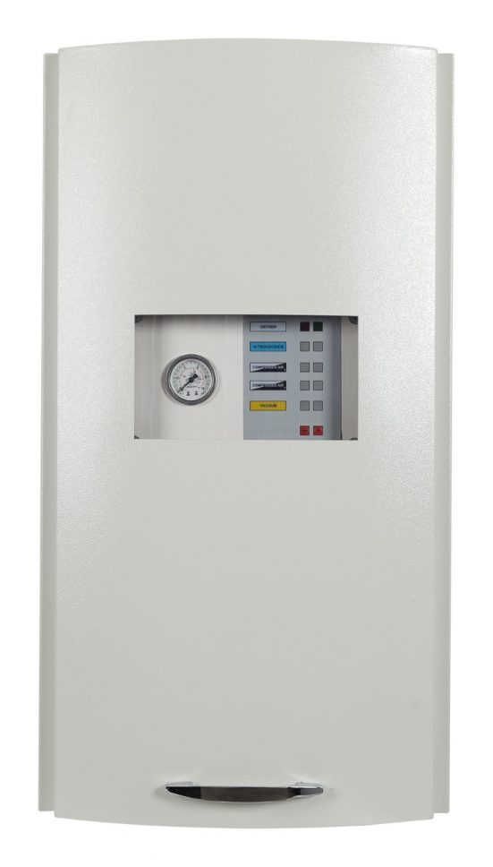 Merkezi gaz santral sistemleri daimi olarak tıbbi gaz desteğini sağlamayı garanti etmektedir. Medikal gaz tüplerden yüksek basınçla santrale girer. Yüksek basınç sistemde iki aşamada düşürülür. Sağ ve sol regülatörler basıncı orta seviyeye düşürür. Sol taraftaki regülatör 850 kPa’a sağ taraftaki regülatör ise 750 kPa’a ayarlı olduğundan sistem sağlıklı olarak çalışmaktadır. Her bir basınç düşürücü, yaklaşık 1100 kPa basınçta devreye giren emniyet valfi barındırır.